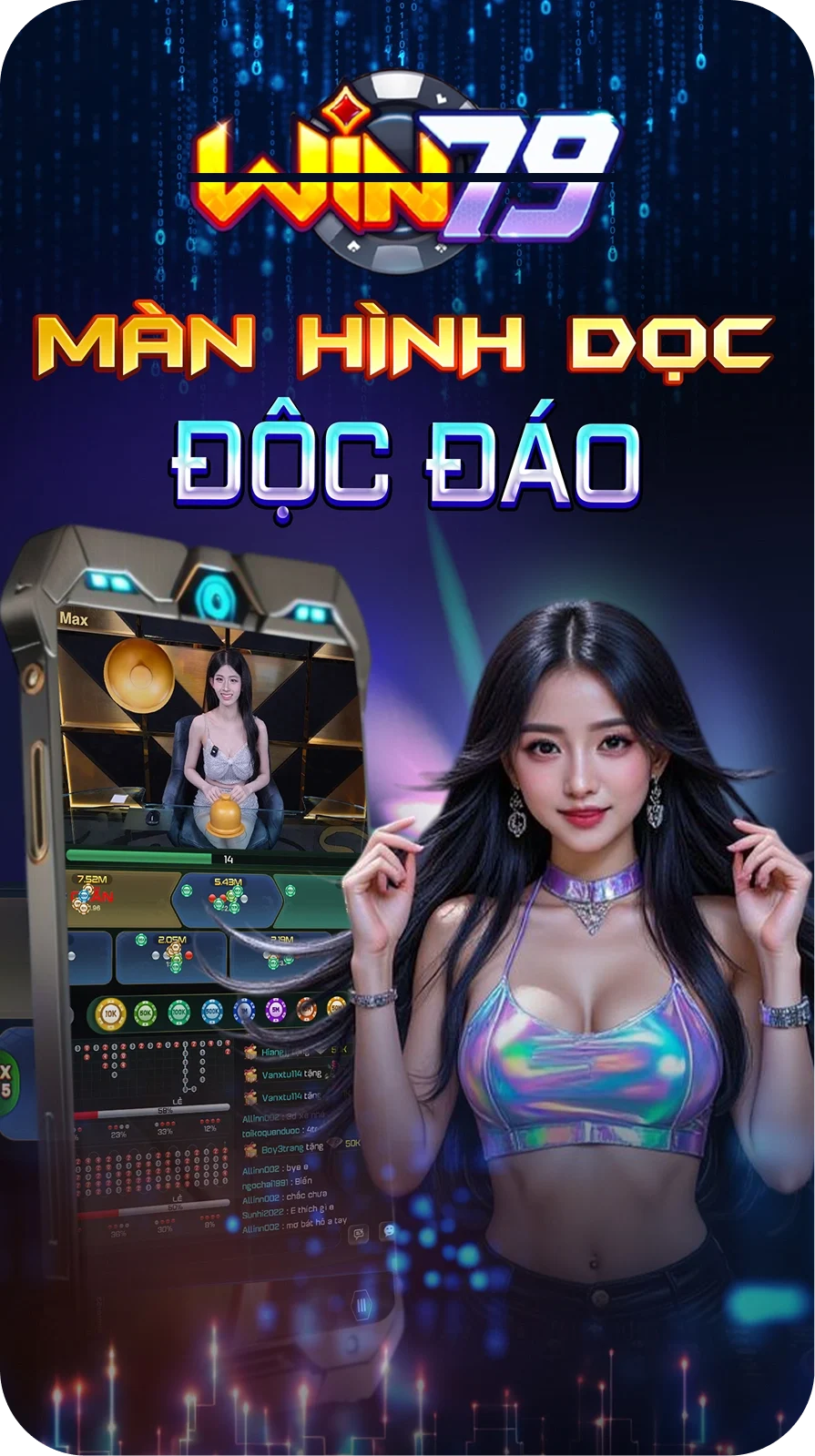 Win79 được thiết kế theo giao diện màn hình dọc có 1-0-2, giúp khách hàng trải nghiệm đơn giản và dễ dàng hơn. Nhiều sự kiện độc đáo như điểm danh mỗi ngày nhận 30M, và lì xì mỗi ngày nhận 200K